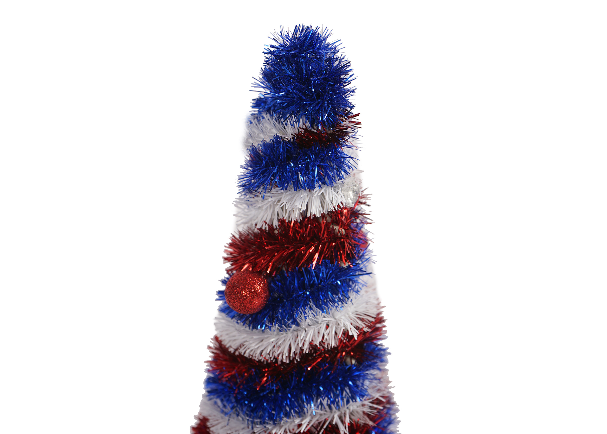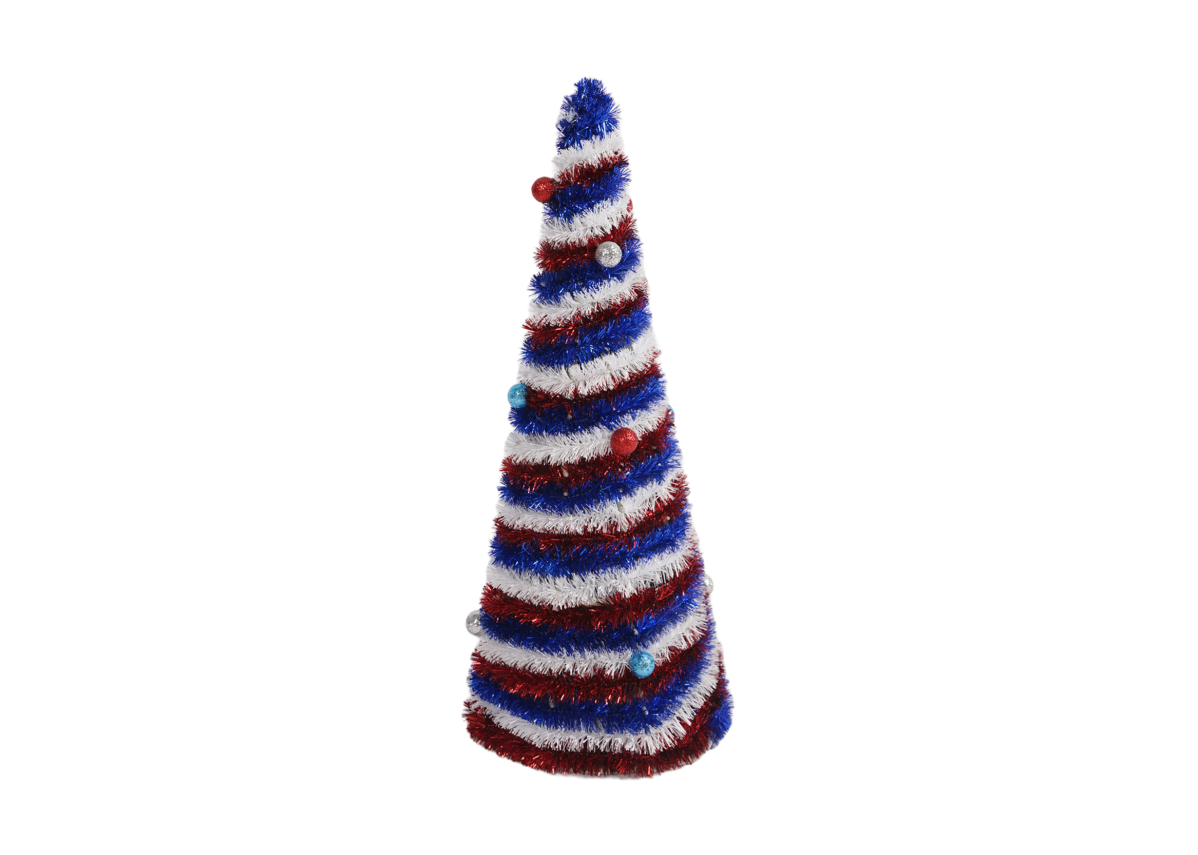 Interspersed among the branches are an array of colorful balls, adding a playful yet elegant touch. These balls come in a mix of the patriotic colors, with some featuring star – shaped cut – outs or embossed patterns, further enhancing the Independence Day theme.