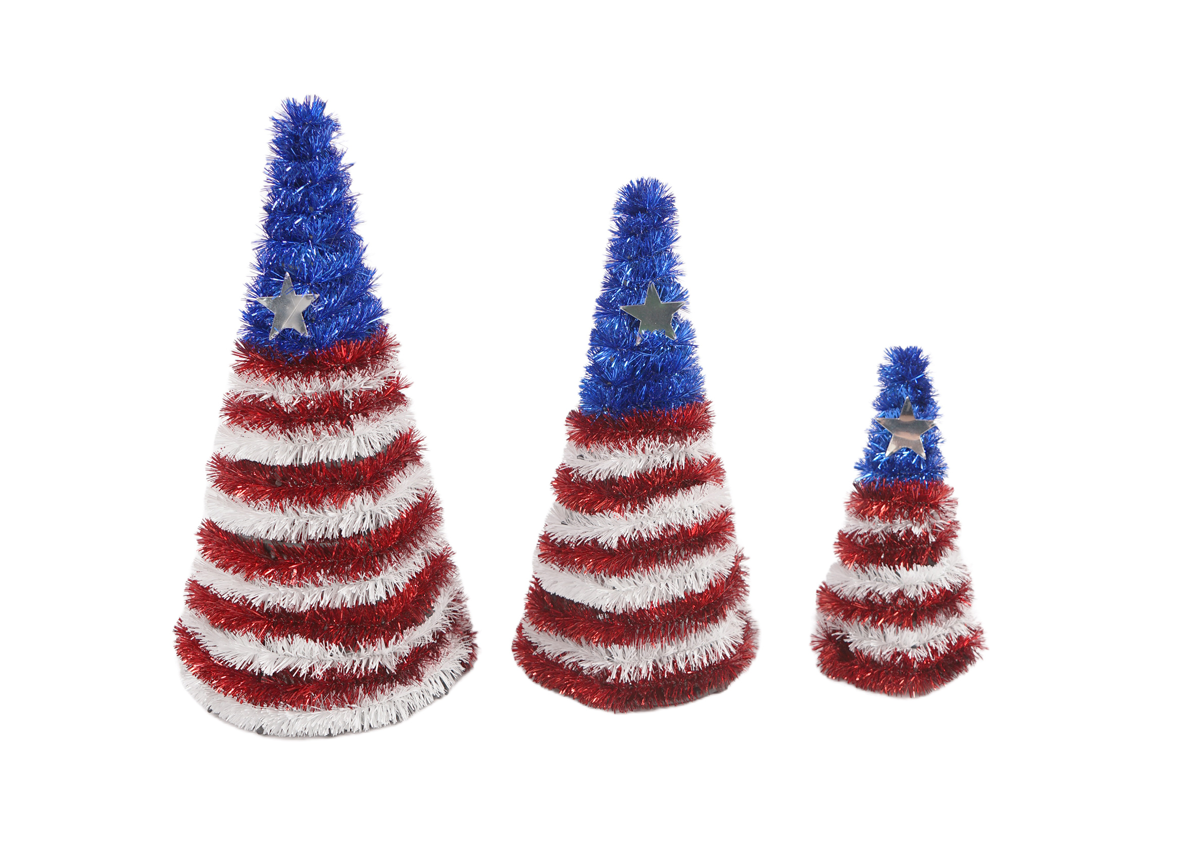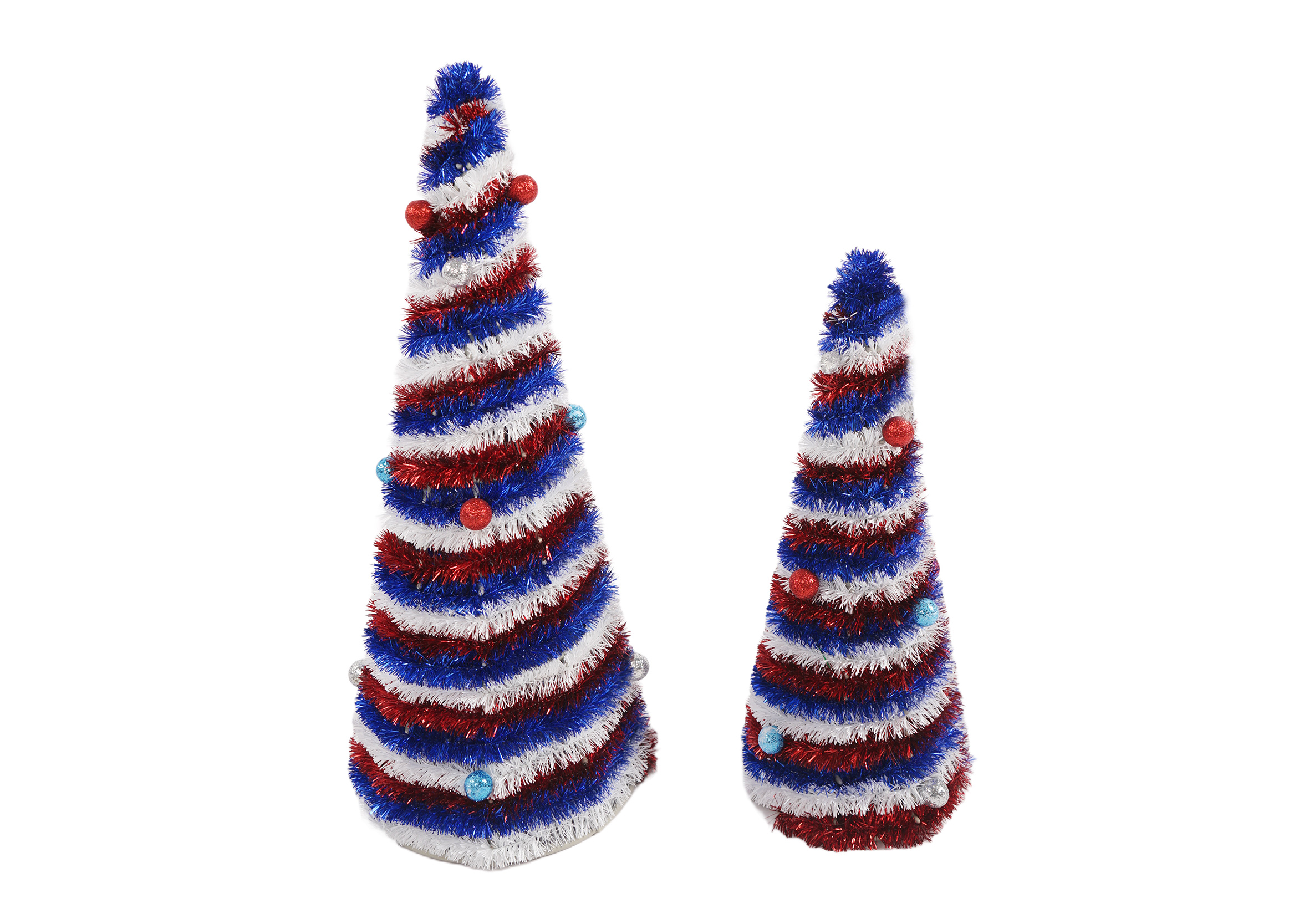 Our table top trees are a visual delight, boasting the iconic colors of the American flag – red, white, and blue. The branches are artfully crafted to give a full and lifelike appearance, creating a perfect backdrop for the patriotic elements.