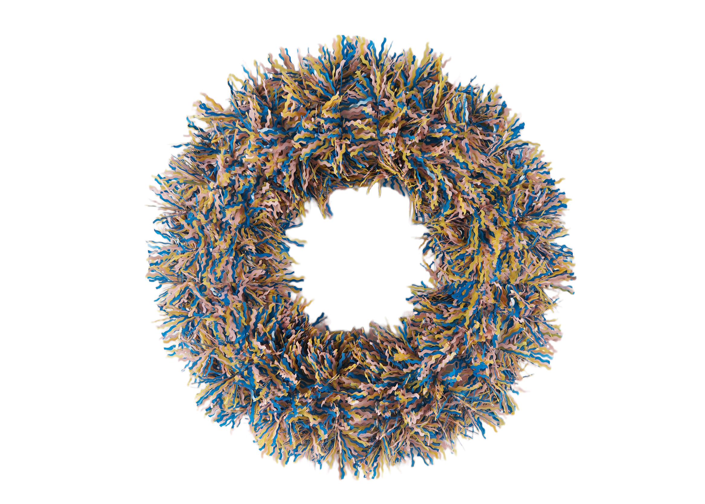 The tinsel ribbon is thick and durable, ensuring that it doesn’t easily fray or lose its shape. It has been intricately wound and arranged around a sturdy wreath base, which provides a stable structure for the entire piece. The base is designed to be lightweight yet strong, making it easy to hang on any door, wall, or even use as a tabletop centerpiece.