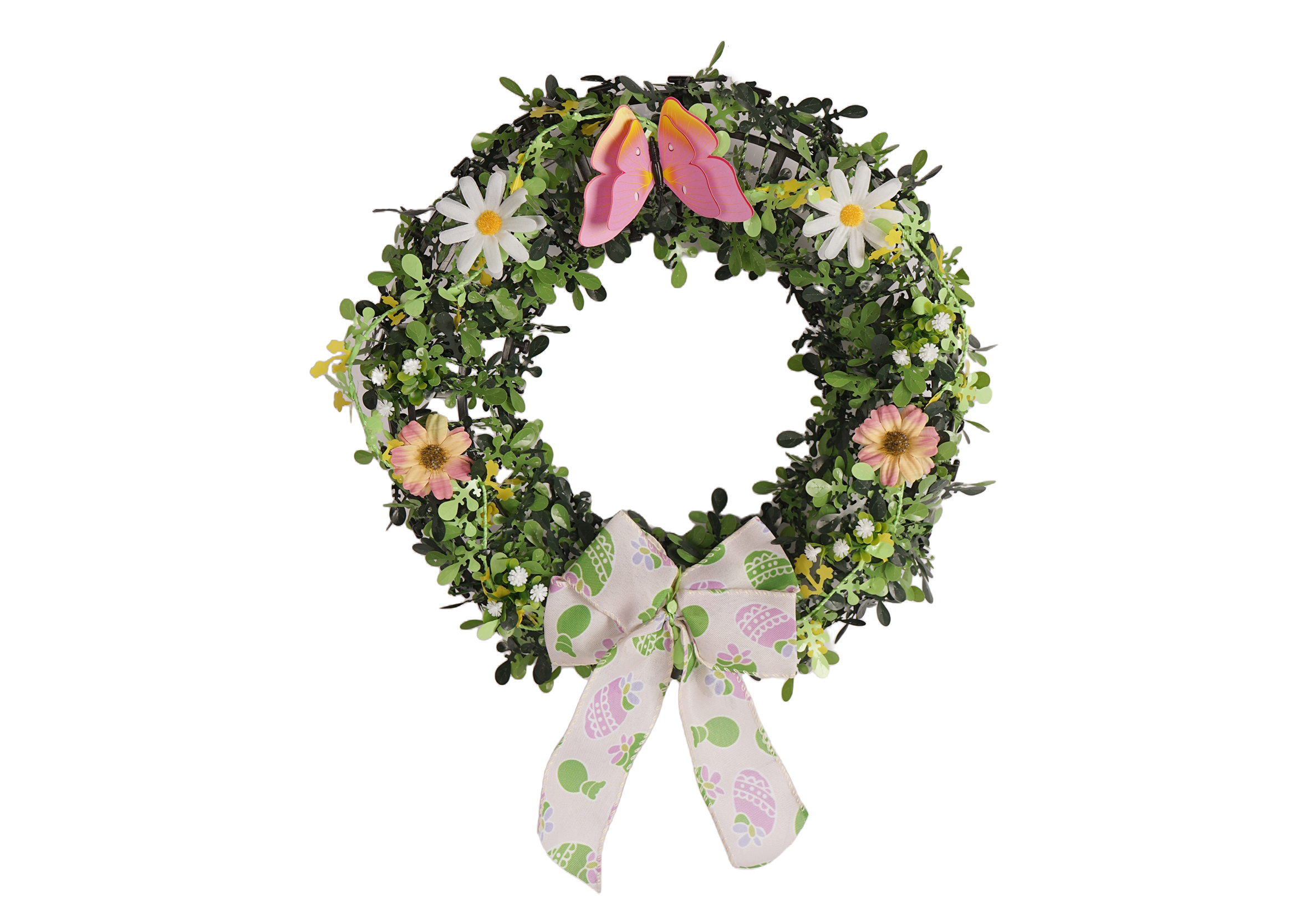 Interspersed with these are unique spring – themed ornaments, such as tiny butterflies, bird – shaped charms, or delicate bows. This wreath is a statement piece that can elevate the decor of any room, whether it’s a minimalist – styled apartment or a more traditional home.