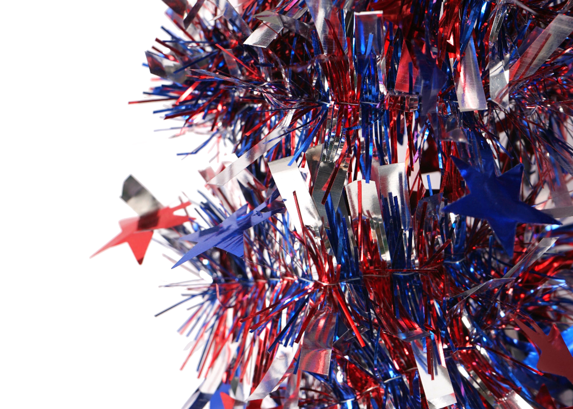 Complementing the tinsel garland are various patriotic accents. Miniature stars, a timeless symbol of the United States, are artfully scattered throughout the wreath. These stars add an extra layer of authenticity and charm, further emphasizing the patriotic theme. The combination of the tinsel and stars creates a visually rich and engaging design that pays homage to the nation’s history and values.