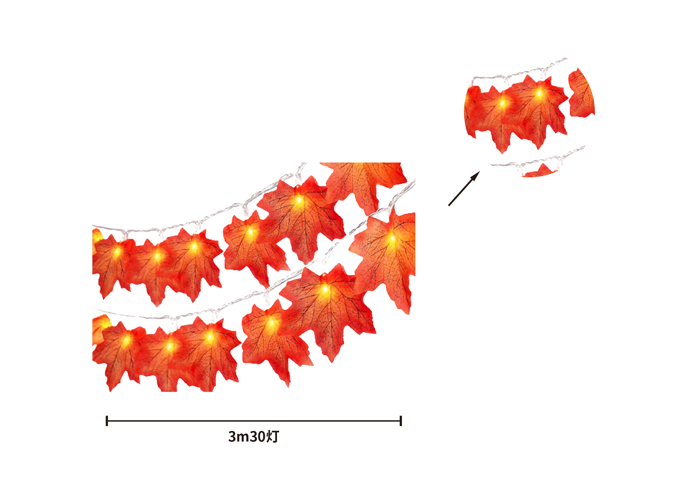 – Realistic Maple Leaf Design:** Each LED light is adorned with detailed simulation maple leaves, providing an authentic touch of fall foliage to your decorations.