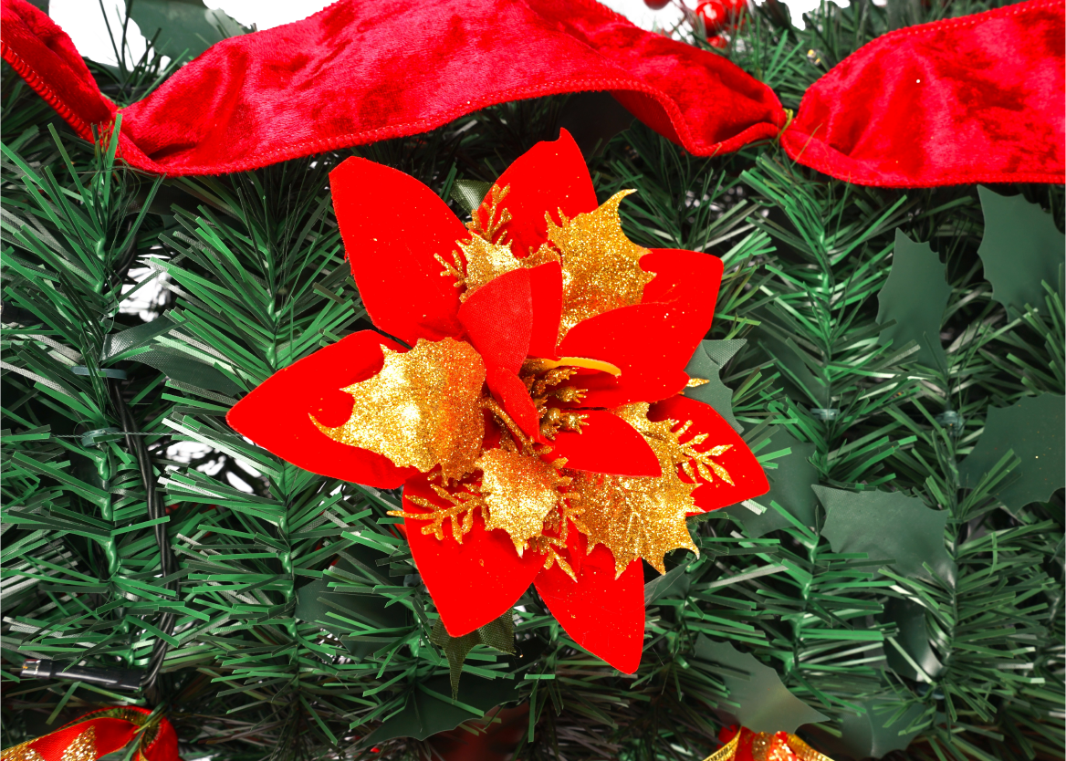 Our Christmas tree stands out with its beautifully crafted red or gold bow decorations. Each bow is meticulously placed to create a harmonious and visually appealing look, adding a touch of sophistication and charm. The bows are made from high-quality materials, ensuring they maintain their shape and color throughout the holiday season.