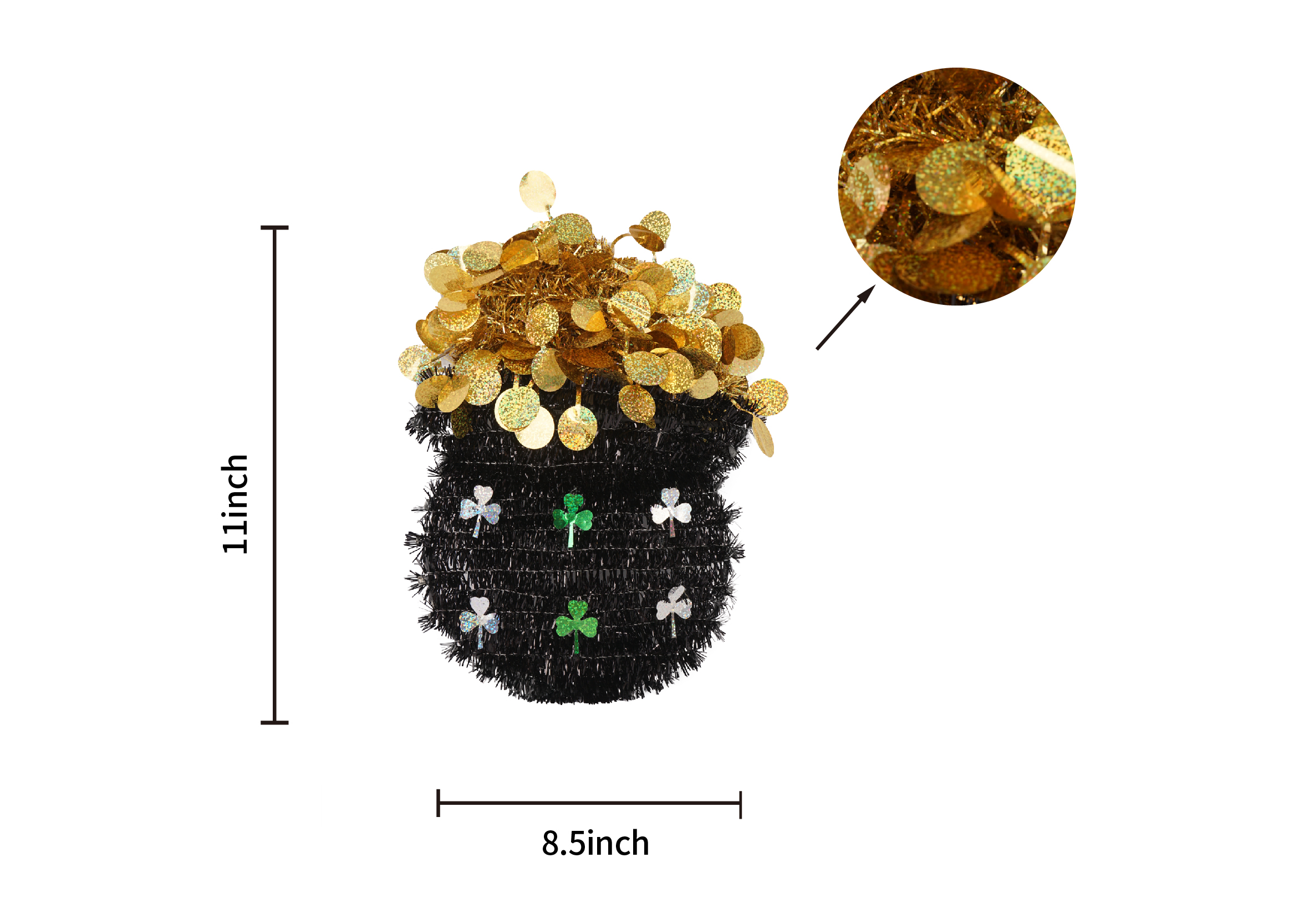 Our dazzling tinsel decoration features a glittery pot of gold at the end of a shimmering rainbow, creating a dynamic visual effect that is sure to impress your guests.