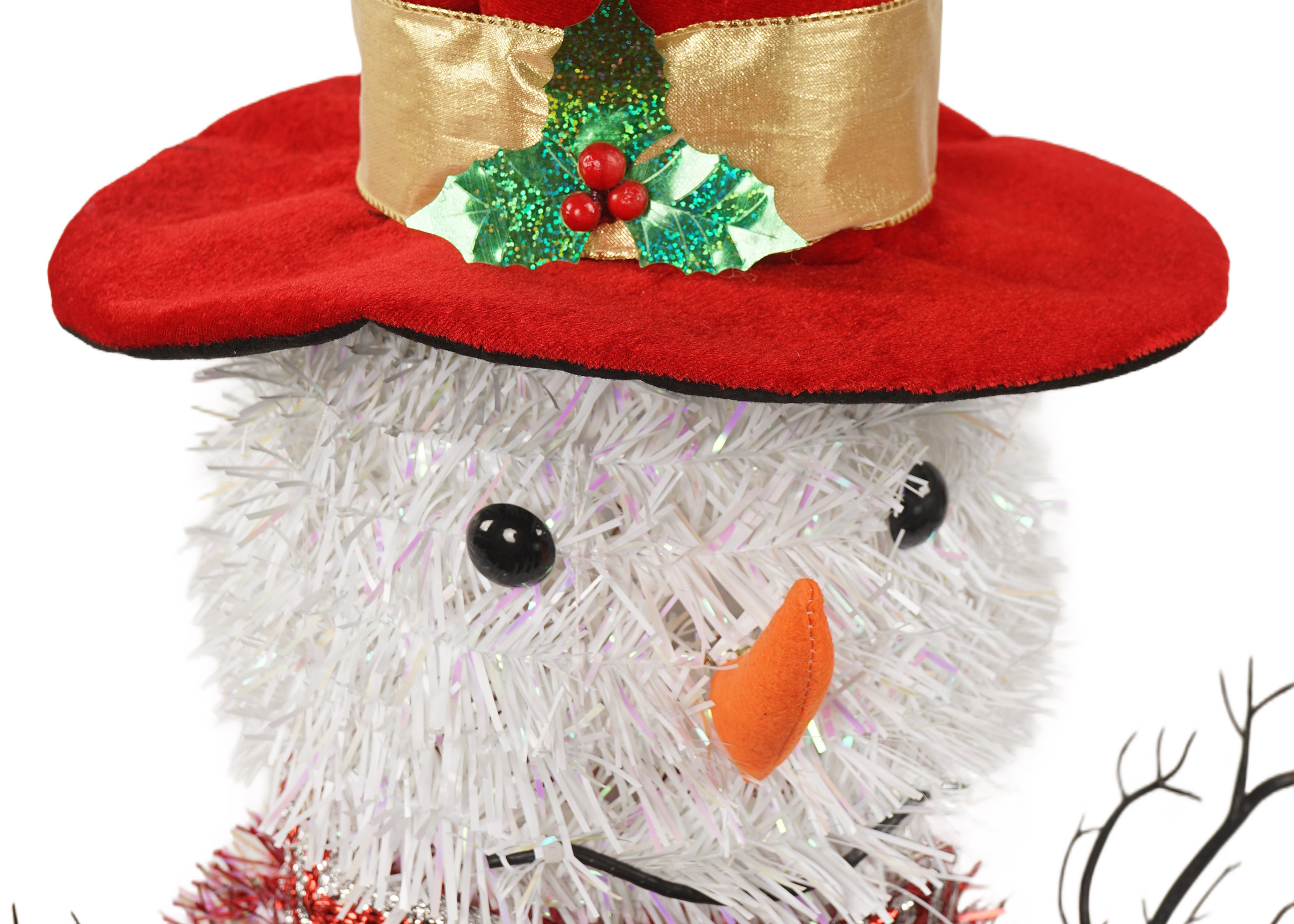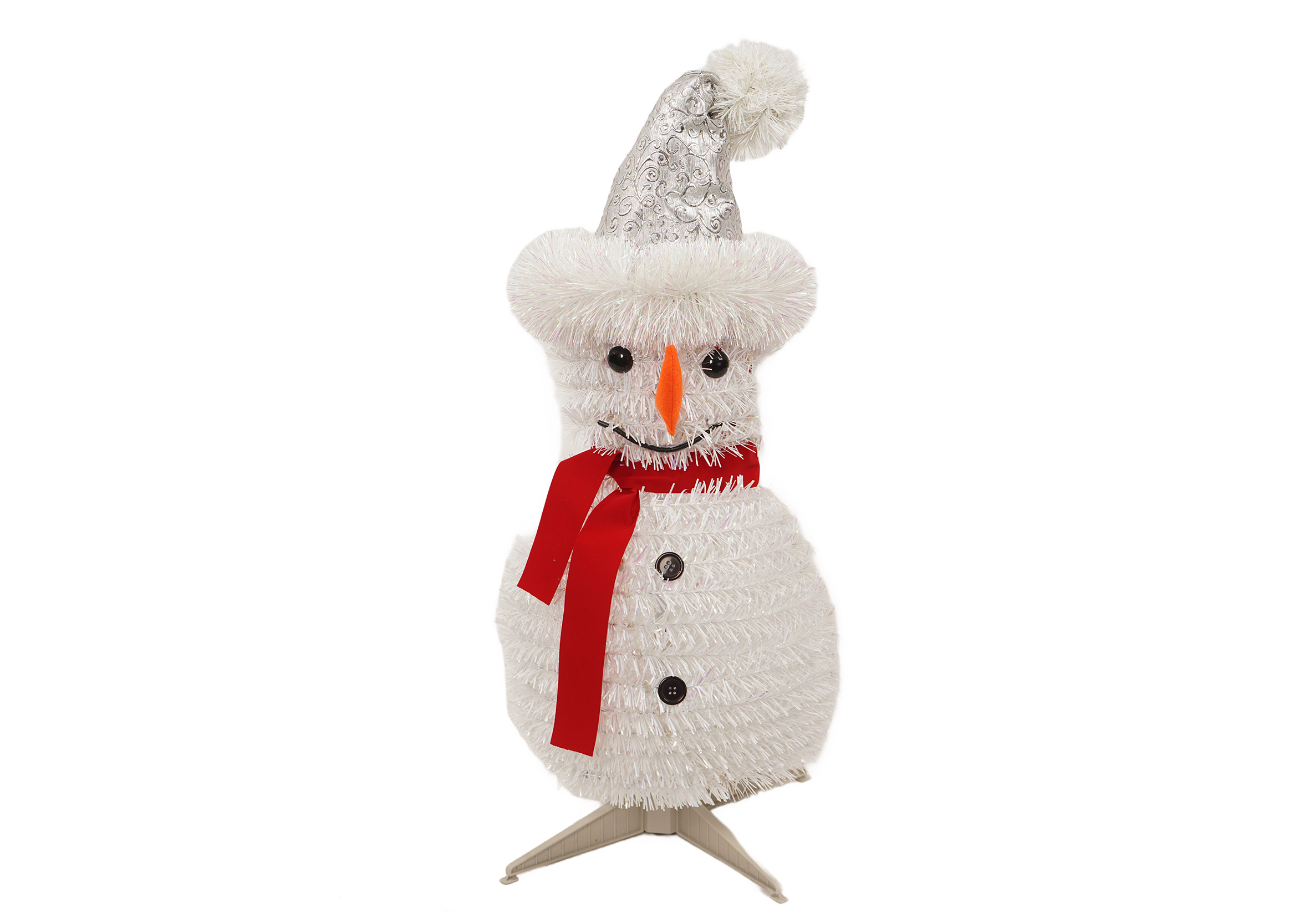 Available in multiple color combinations, from classic white and red to frosty blue and silver, this tinsel snowman offers something for everyone’s holiday decor style. Its eye-catching sparkle and friendly smile make it especially appealing for families, adding a touch of whimsy that children and adults alike will appreciate.