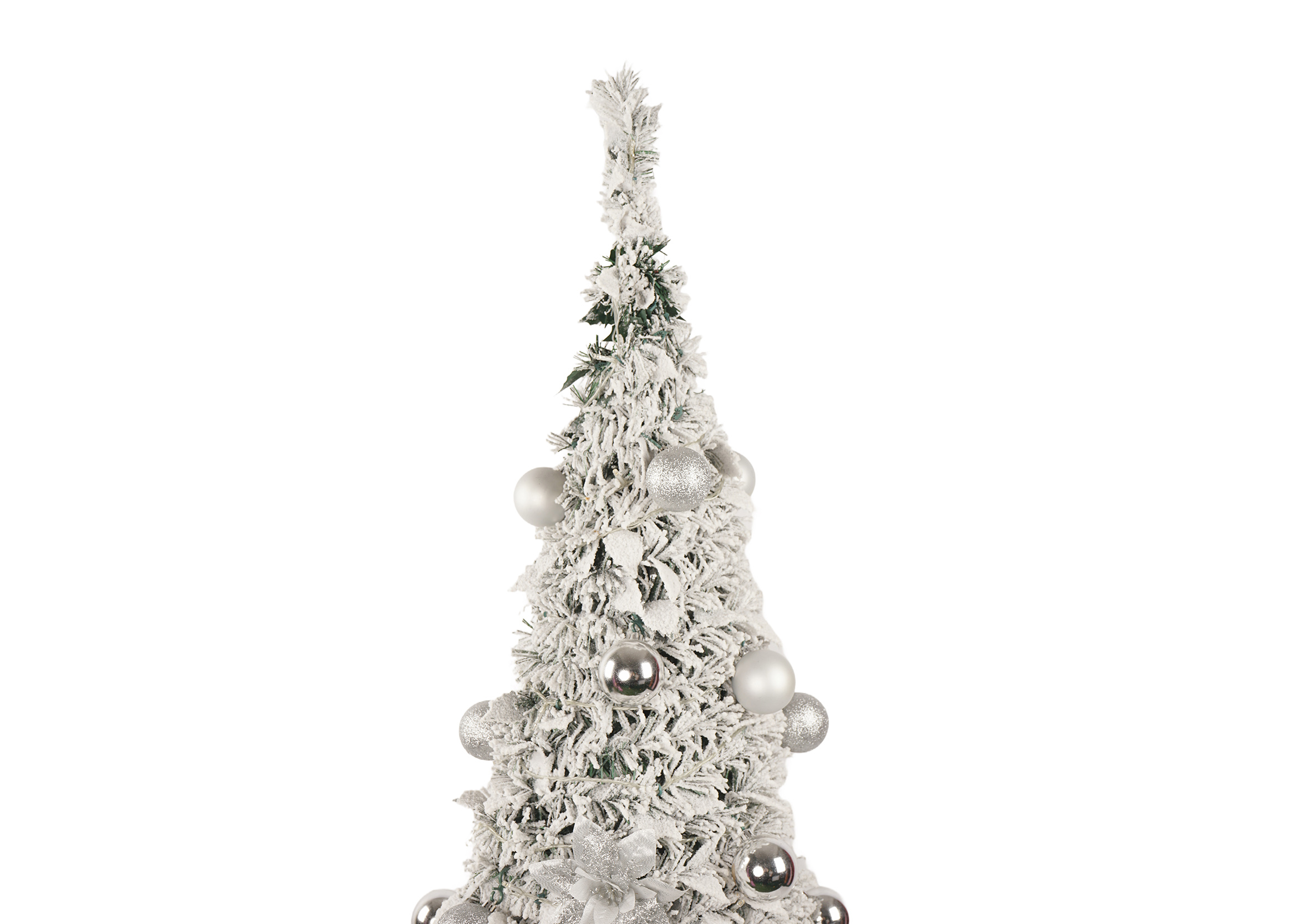 This tree is adorned with a realistic snow-frosted finish, giving it a winter wonderland vibe. The white branches, paired with a sleek black or customizable base color, add a modern touch to traditional holiday décor.