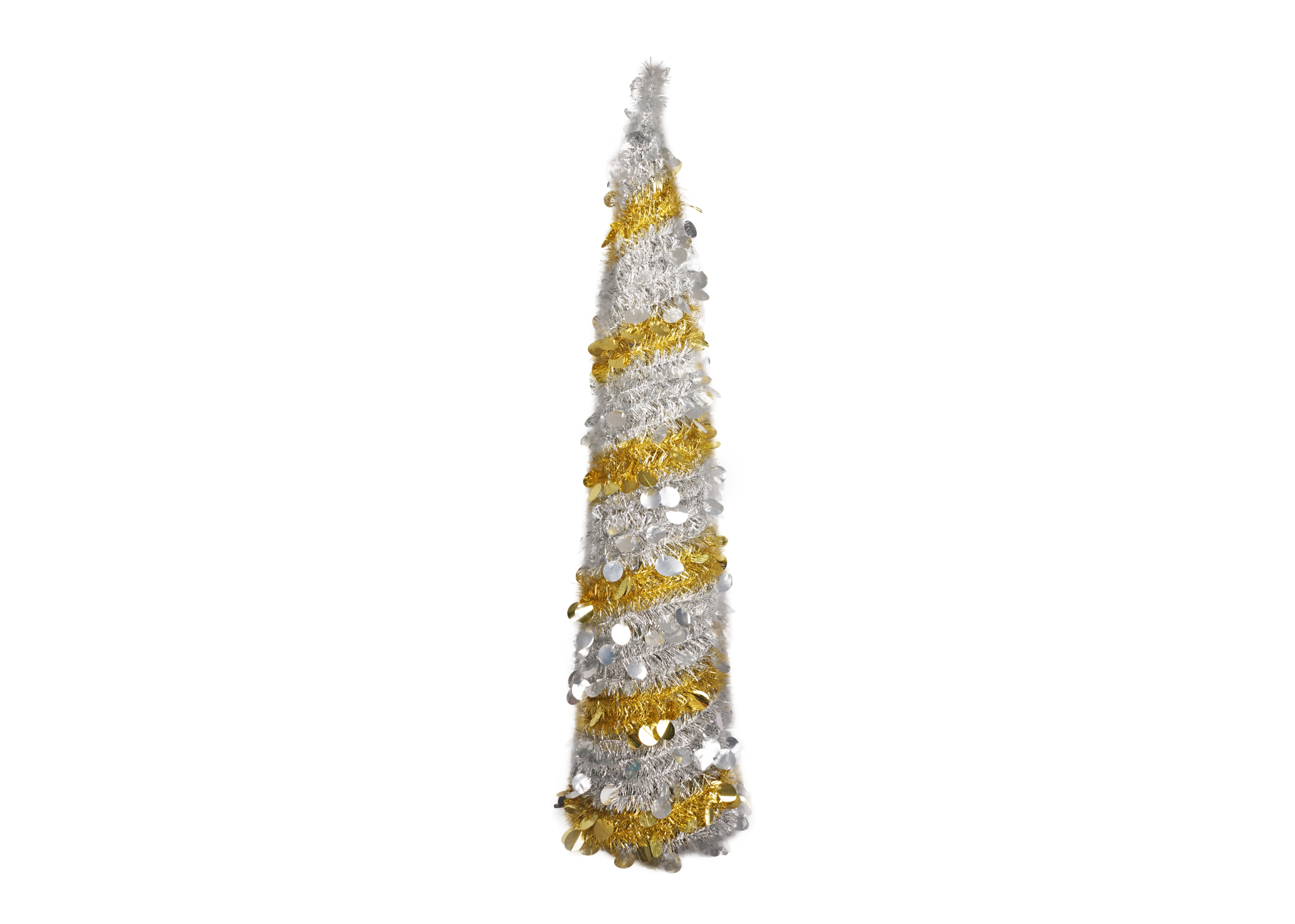 Pop Up Design: The Pop Up Tinsel Christmas Tree features a collapsible design that allows for quick and hassle-free setup. Simply pull up the tree from its base, and it instantly transforms into a beautiful, full tree.