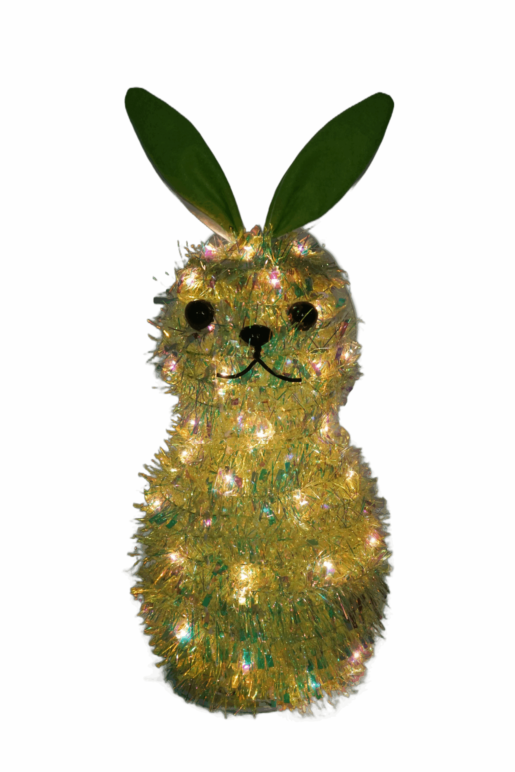 For example, the body of the rabbit might be crafted with a base material that gives it a three – dimensional look, and then adorned with tinsels that catch the light from the LEDs. The LED lights can be of different colors, such as warm white for a cozy feel, or multicolored for a more festive and vibrant atmosphere.