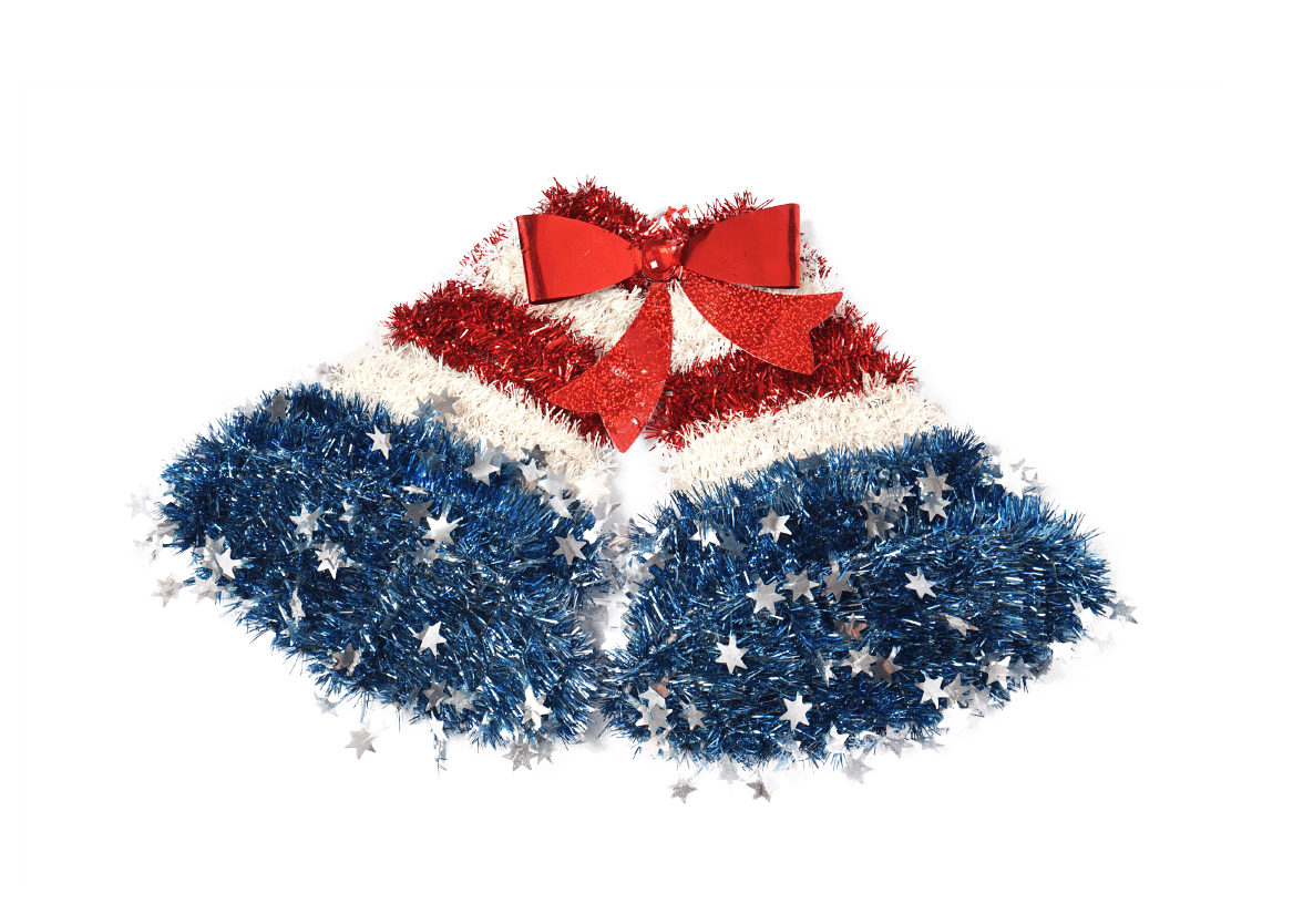 Whether displayed on your desk, mantel, or tabletop, this festive bell adds a festive and patriotic vibe to any space. Crafted with high-quality materials, it’s durable and long-lasting, ensuring it can be enjoyed for many 4th of July celebrations to come. Ring in the holiday with style and spirit with our Red, White & Blue Tinsel Small Bell!