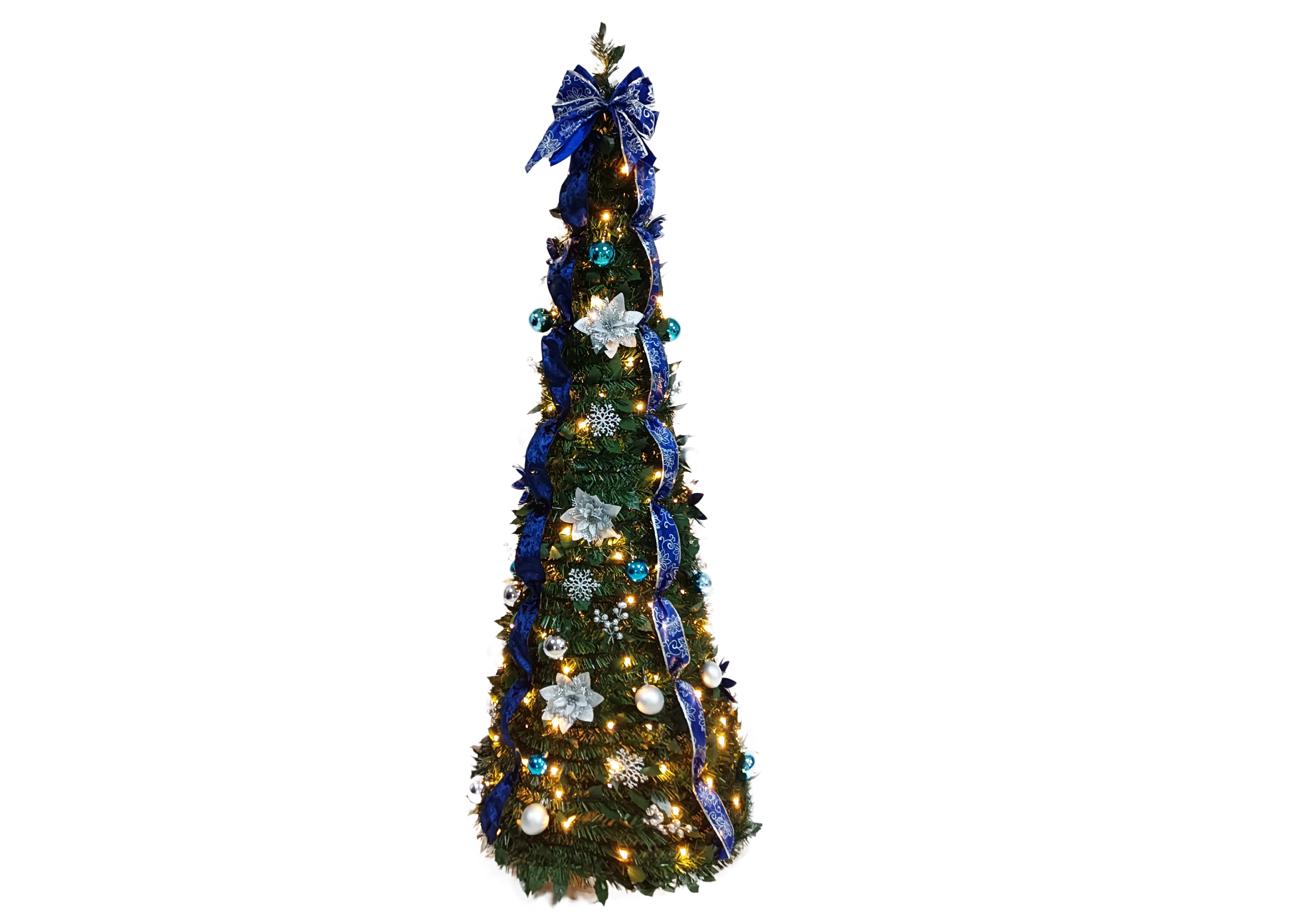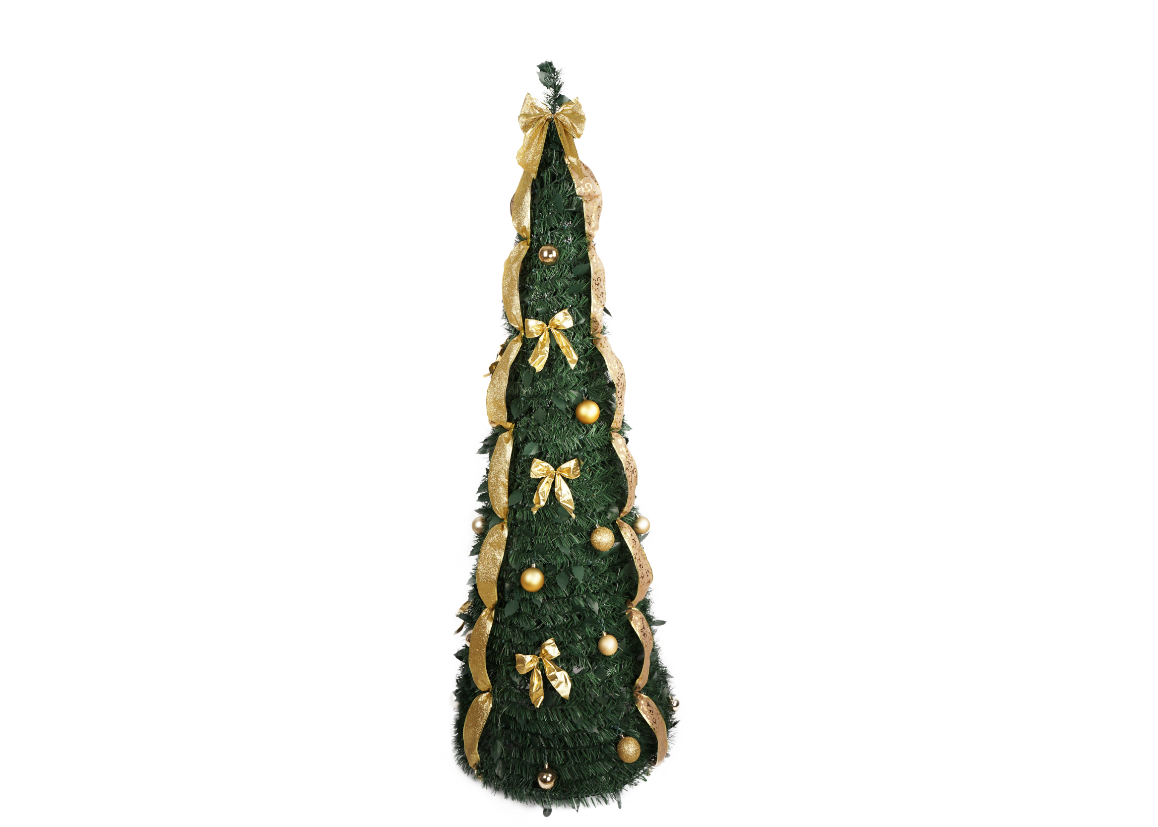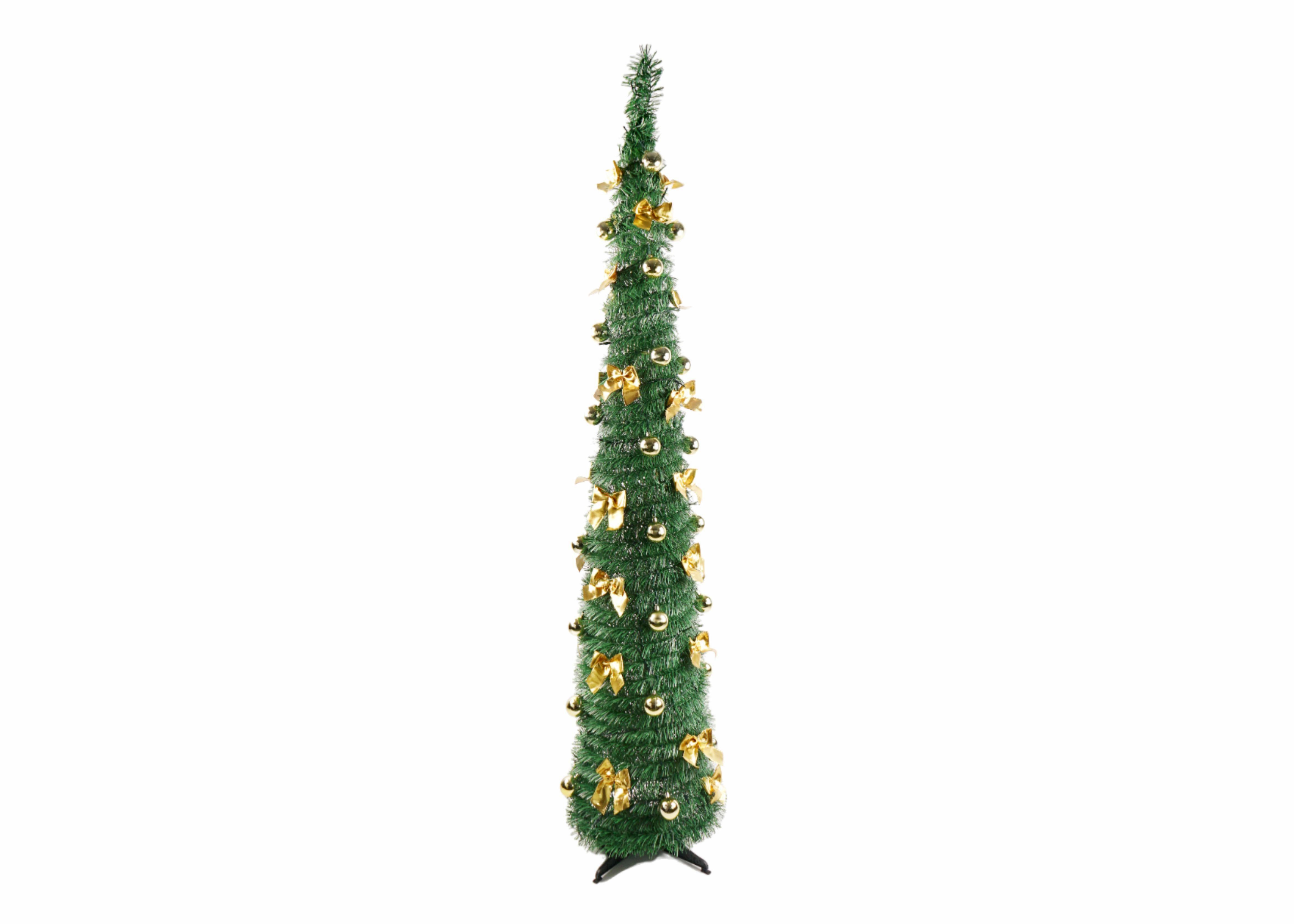 Our Foldable Christmas Tree is meticulously crafted to resemble a classic Christmas tree, with lush, realistic branches that create a full and opulent appearance. Standing tall, it is decorated with a series of elegant bow decorations that add a touch of charm and whimsy. These bows are strategically placed to create a harmonious and visually pleasing look, ensuring that the tree captures attention from every angle.