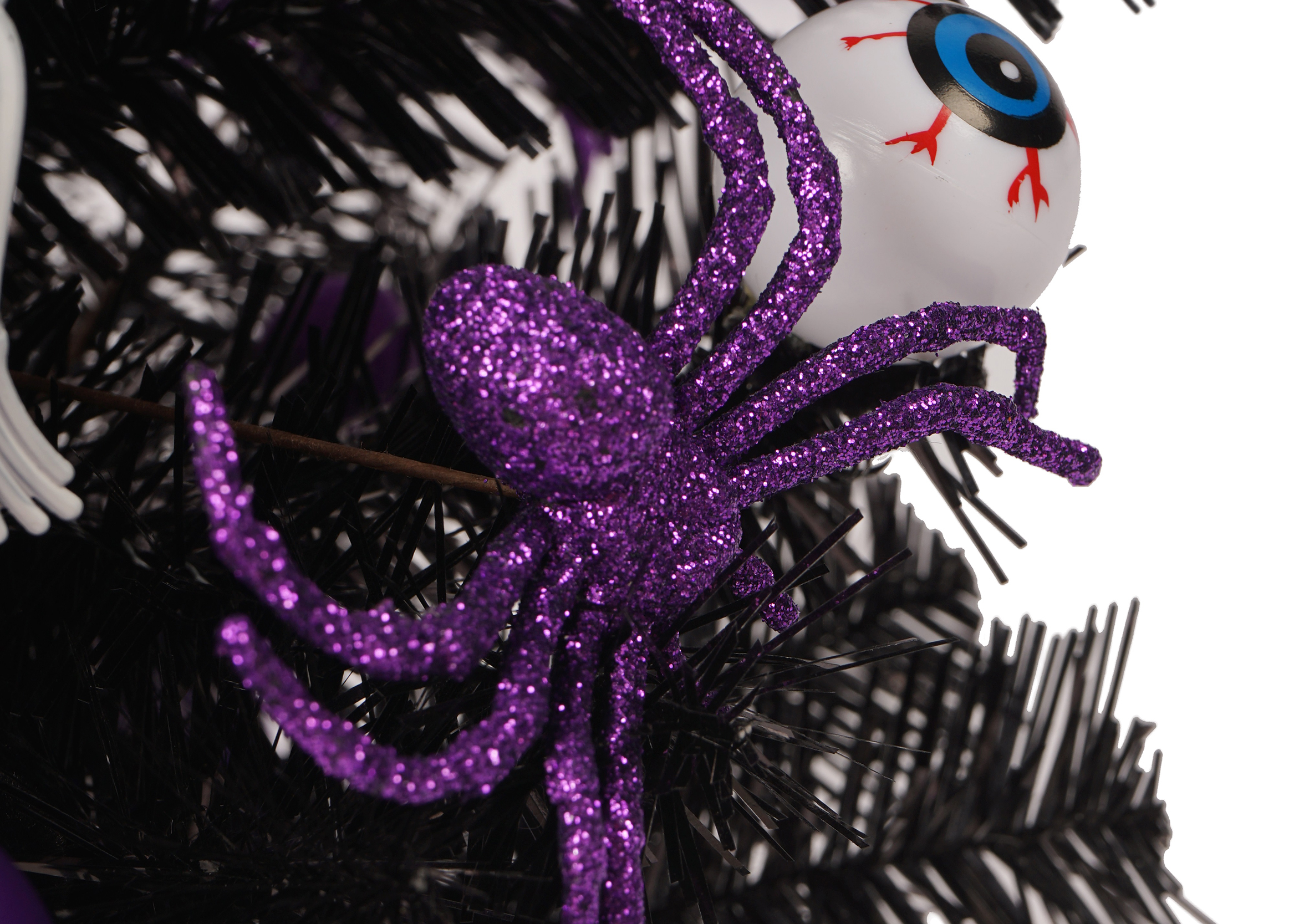 What truly sets this tree apart are the exclusive Halloween – themed scary decorations that adorn it. Each tree is festooned with creepy – crawly spiders. These aren’t your average spiders; they are carefully crafted to look as realistic as possible, with their long, hairy legs and menacing eyes. As if they’re ready to scurry down the branches at any moment, they add an extra layer of fright to the overall display.