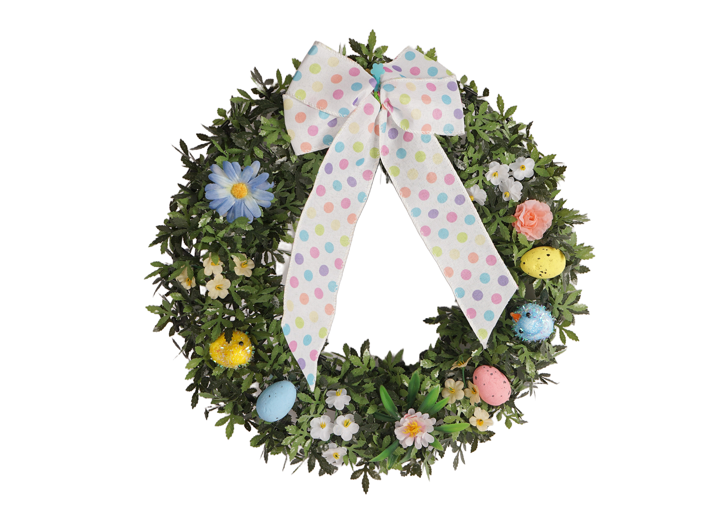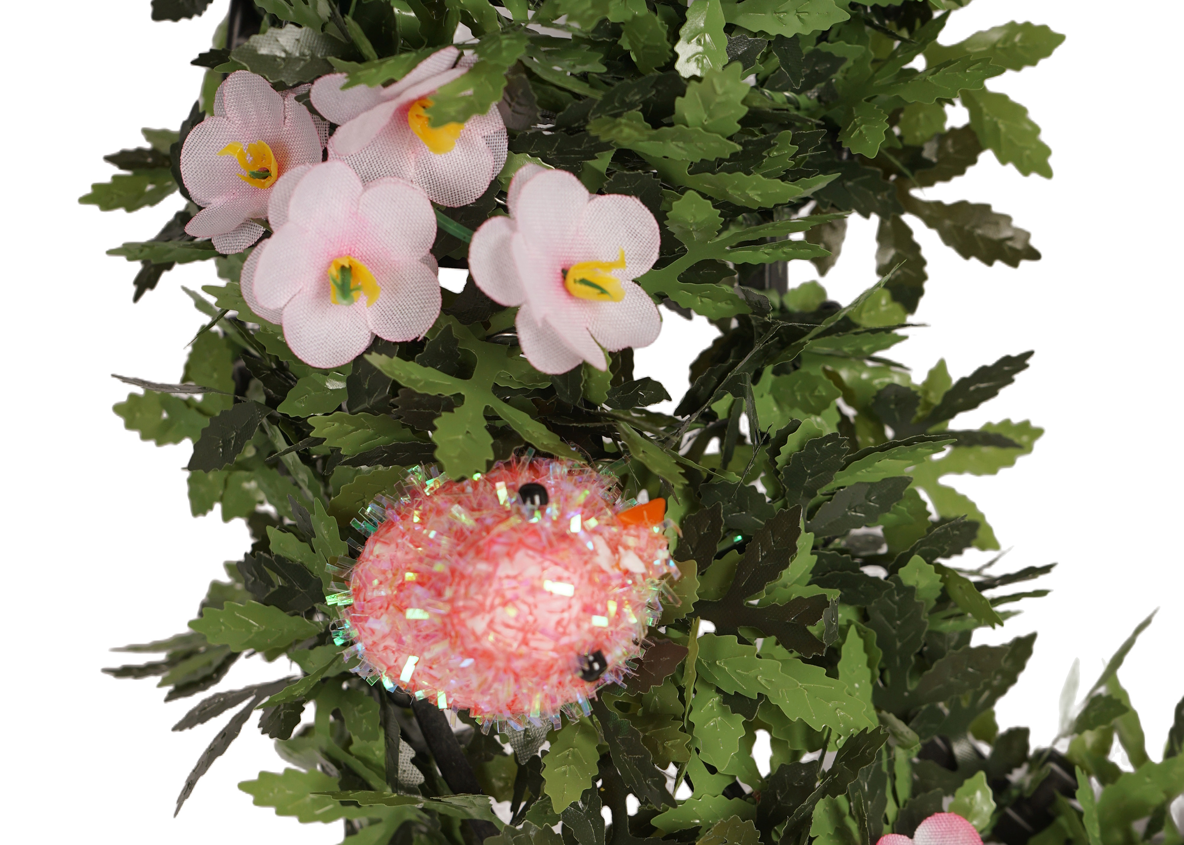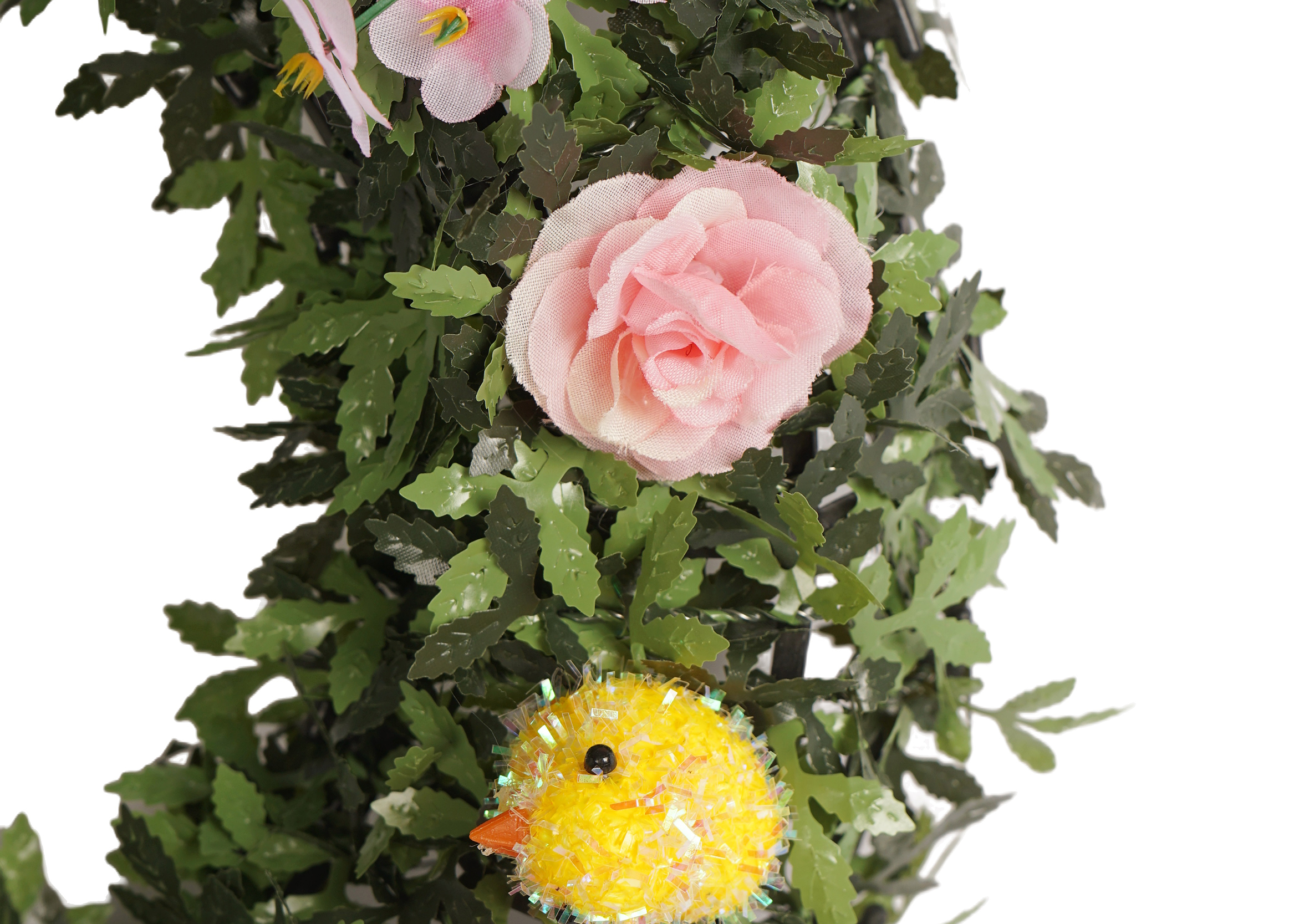 The Spring Tinsel Wreath is a veritable showcase of adorable elements. The meticulously crafted flower decorations on it are a sight to behold. Their petals are so delicate and vivid, as if they’ve just blossomed in the spring breeze, exuding a fresh and sweet fragrance. The chick decorations add a sense of liveliness and playfulness.