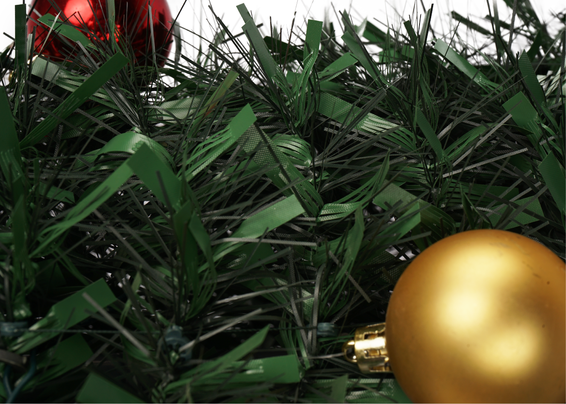 Color Options: Available in various tinsel colors with matching or contrasting Christmas balls.