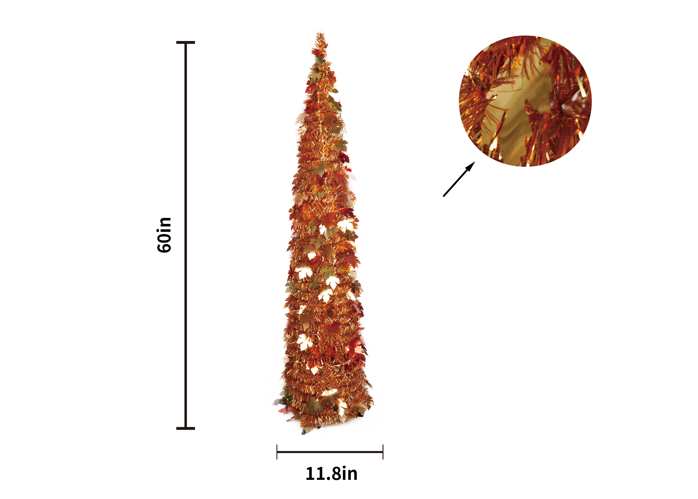1. Hassle-Free Assembly: The pop-up design of the Harvest Day Tinsel Tree ensures a quick and stress-free setup. Simply pull up the tree and secure it in place. No more dealing with tangled branches or complicated instructions. After the celebrations, it collapses easily for compact storage, ready for the next year’s festivities.